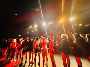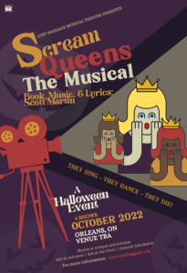 A hotel ballroom, 1998, and six voluptuous B-movie “Scream Queens” revive their fading acting careers by presenting a musical revue for their fans at a science fiction and horror film convention. From young newbie to seasoned grand dame, the Queens strut their stuff in song and dance to prove “I Got All of the Talent I Need.” For 90 minutes of hilarious musical mayhem, they take the audience into the world of no-budget movies with awful scripts, fake monsters and gooey “Special FX.” They even involve the audience in a screaming contest and zombie talent search. As each Queen reveals her personal story, we share their hopes and dreams, from Tonya’s love of her idol “Fay Wray” to Alexis’ advice that “Everybody Starts at the Bottom” to DeeDee’s secrets of Scream Queen longevity: “Don’t Open That Door.” British screen veteran Nadine savors her joy of being “Still In Demand” while Bianca celebrates the lifetime achievements of “Roger Corman” and Richelle laments her own elusive “Happy Endings.” They also screen original clips from their direct-to-video “scary movie” spoofs such as “Revenge of the Psycho Bimbos” and “Malibu Vampire Vixens,” all hoping to attract the attention of a popular young horror film director lurking in the audience.